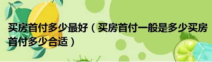 买房首付多少最好(买房首付一般是多少买房首付多少合适)