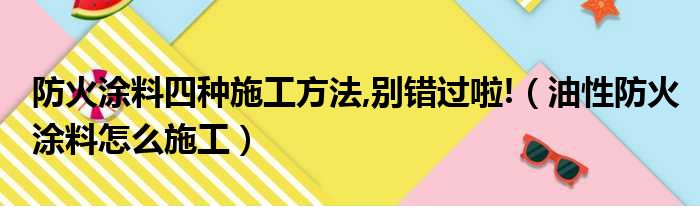 防火涂料四种施工方法,别错过啦!(油性防火涂料怎么施工)