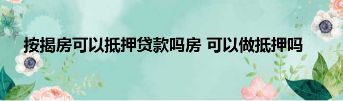 按揭房可以抵押贷款吗房 可以做抵押吗