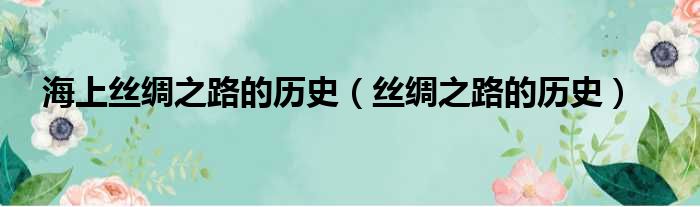大家好,今天小六子来为大家解答以下的问题,关于海上丝绸之路的历史,丝绸之路的历史这个很多人还不知道,现在让我们一起来看看吧!