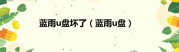 蓝雨u盘坏了,蓝雨u盘很多人还不知道,今天乐天来为大家解答以上问题,现在让我们一起来看看吧!