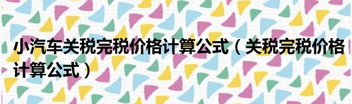 导读 大家好,今天小六子来为大家解答以下的问题,关于小汽车关税完税价格计算公式,关税完税价格计算公式这个很多人还不知道,现在让我们一起来