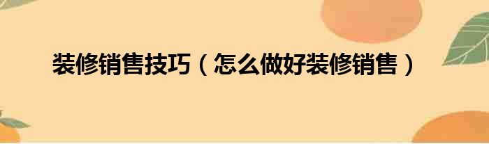 大家好,啊来为大家解答以上的问题。装修销售技巧,怎么做好装修销售这个很多人还不知道,现在让我们一起来看看吧!