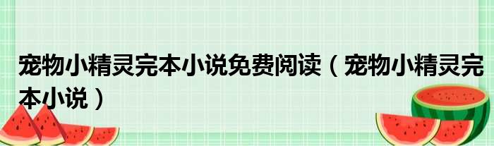 导读 大家好,今天小六子来为大家解答以下的问题,关于宠物小精灵完本小说免费阅读,宠物小精灵完本小说这个很多人还不知道,现在让我们一起来看
