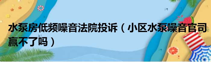 水泵房低频噪音法院投诉(小区水泵噪音官司赢不了吗)