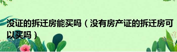 没证的拆迁房能买吗(没有房产证的拆迁房可以买吗)