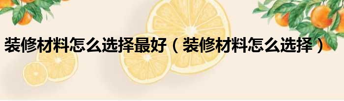 装修材料怎么选择最好(装修材料怎么选择)