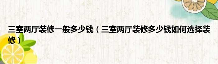 三室两厅装修一般多少钱(三室两厅装修多少钱如何选择装修)