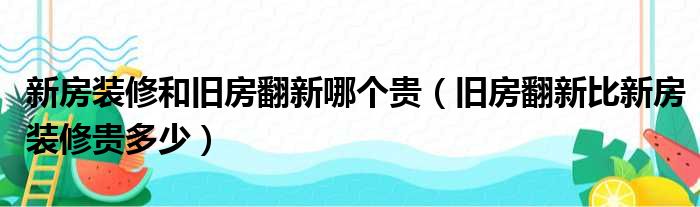 旧房翻新比新房装修贵6%~10%左右,具体情况是:一、旧房翻新需拆除,按市场收费,大概要多1%;二、水电老化需重做,人工费加材料费大概要贵1%~2%;三、铺设地面和墙面材料,整体比新房装修贵2%~3%;四、老旧门窗更换,可能要贵1%;五、家具布置,整体家具如果选择性的更换,大概贵2%左右。