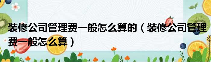 装修公司管理费一般怎么算的(装修公司管理费一般怎么算)