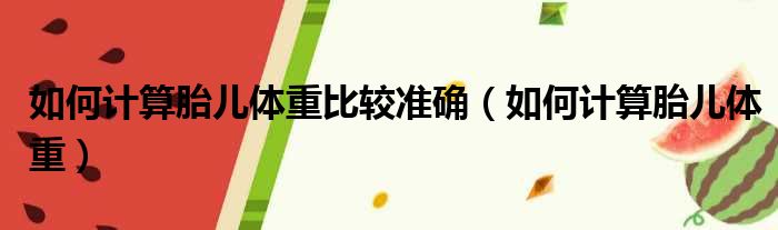 如何计算胎儿体重比较准确(如何计算胎儿体重)