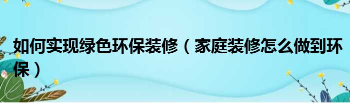 如何实现绿色环保装修(家庭装修怎么做到环保)