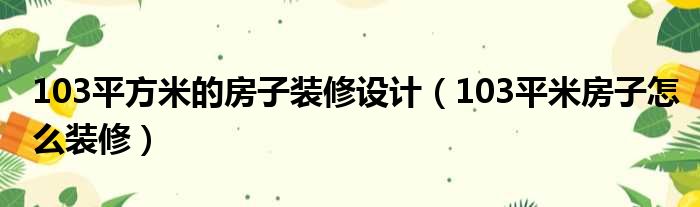 以上是小编今天整理的103平米房子怎么装修的意见和看法,需要装修或者正在装修的朋友可以作为参考,装修出既实用、又好看、住着又比较舒适的环境来!