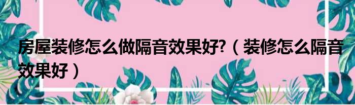 房屋装修怎么做隔音效果好?(装修怎么隔音效果好)