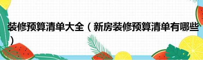 大家好,啊来为大家解答以上的问题。装修预算清单大全,新房装修预算清单有哪些这个很多人还不知道,现在让我们一起来看看吧!