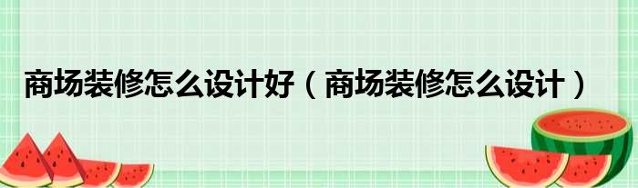 商场装修怎么设计好(商场装修怎么设计)
