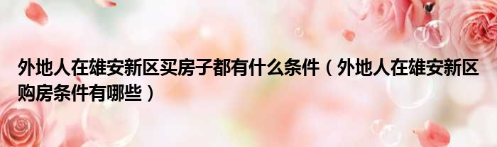 外地人在雄安新区买房子都有什么条件(外地人在雄安新区购房条件有哪些)