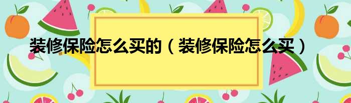 大家好,啊来为大家解答以上的问题。装修保险怎么买的,装修保险怎么买这个很多人还不知道,现在让我们一起来看看吧!