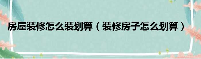 大家好,啊来为大家解答以上的问题。房屋装修怎么装划算,装修房子怎么划算这个很多人还不知道,现在让我们一起来看看吧!