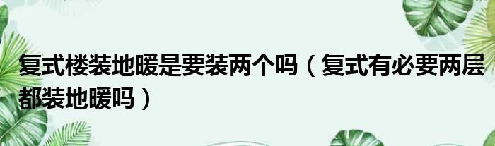 复式楼装地暖是要装两个吗(复式有必要两层都装地暖吗)