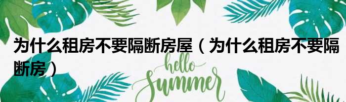 为什么租房不要隔断房屋(为什么租房不要隔断房)