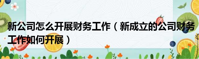 新公司怎么开展财务工作(新成立的公司财务工作如何开展)