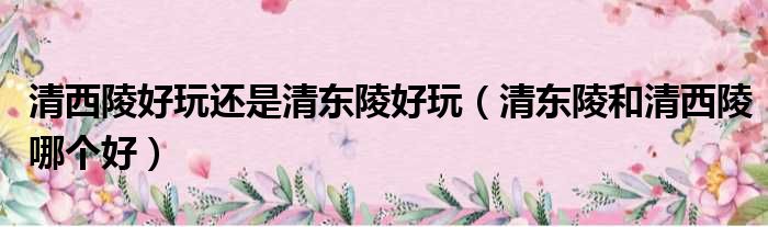 导读 大家好,今天小六子来为大家解答以下的问题,关于清西陵好玩还是清东陵好玩,清东陵和清西陵哪个好这个很多人还不知道,现在让我们一起来看