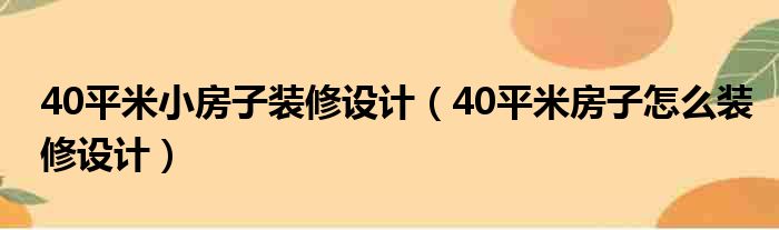 40平米小房子装修设计(40平米房子怎么装修设计)