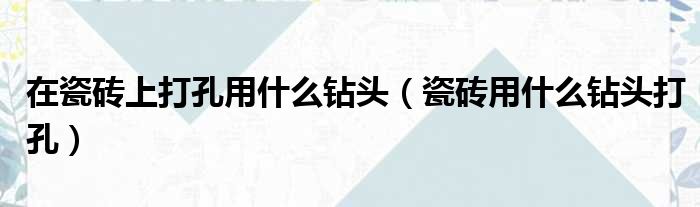 在瓷砖上打孔用什么钻头(瓷砖用什么钻头打孔)