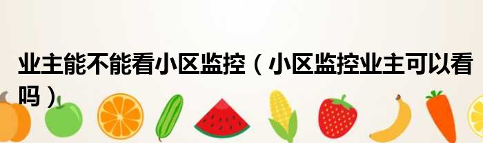 业主能不能看小区监控(小区监控业主可以看吗)