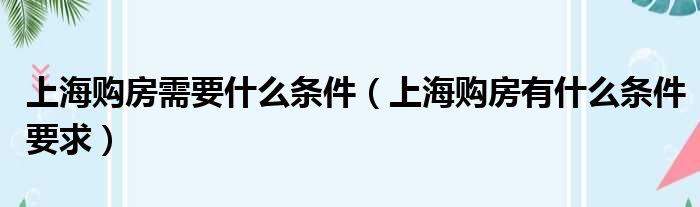 大家好,啊来为大家解答以上的问题。上海购房需要什么条件,上海购房有什么条件要求这个很多人还不知道,现在让我们一起来看看吧!