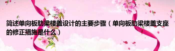 简述单向板肋梁楼盖设计的主要步骤(单向板肋梁楼盖支座的修正措施是什么)