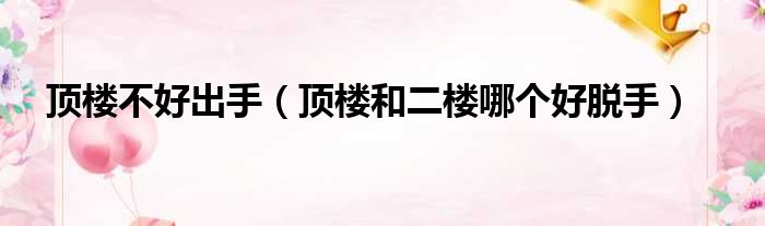 顶楼不好出手(顶楼和二楼哪个好脱手)