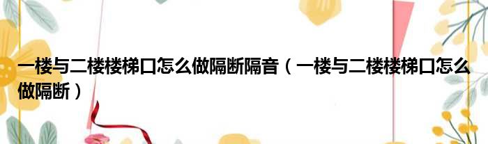 一楼与二楼楼梯口怎么做隔断隔音(一楼与二楼楼梯口怎么做隔断)
