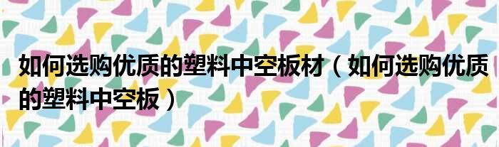 如何选购优质的塑料中空板材(如何选购优质的塑料中空板)
