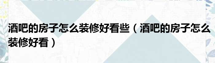 酒吧的房子怎么装修好看些(酒吧的房子怎么装修好看)
