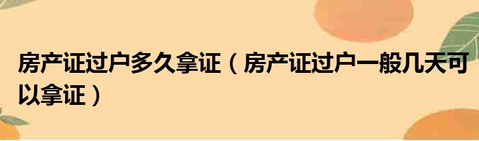房产证过户多久拿证(房产证过户一般几天可以拿证)