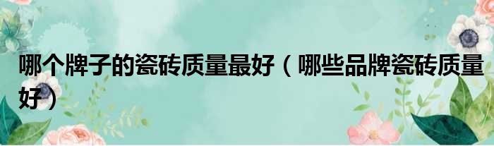 哪个牌子的瓷砖质量最好(哪些品牌瓷砖质量好)