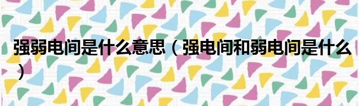 强弱电间是什么意思(强电间和弱电间是什么)
