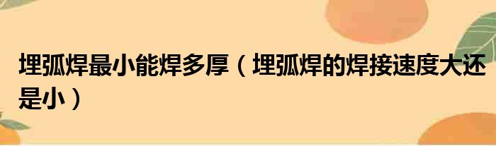 埋弧焊最小能焊多厚(埋弧焊的焊接速度大还是小)