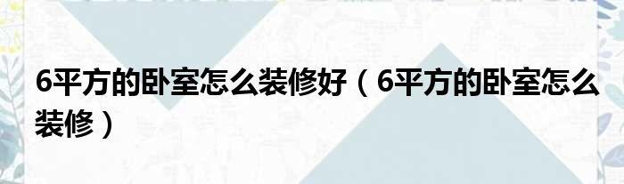 6平方的卧室怎么装修好(6平方的卧室怎么装修)