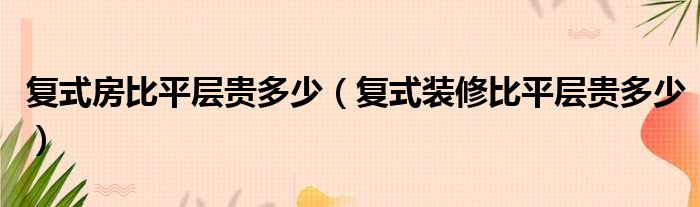 大家好,啊来为大家解答以上的问题。复式房比平层贵多少,复式装修比平层贵多少这个很多人还不知道,现在让我们一起来看看吧!