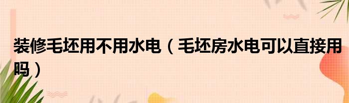装修毛坯用不用水电(毛坯房水电可以直接用吗)