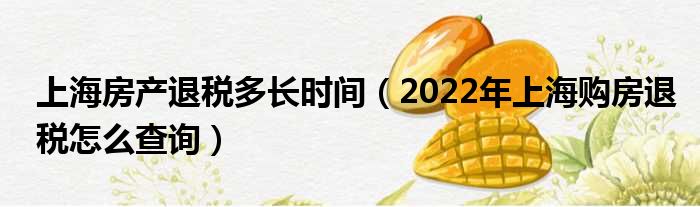 上海房产退税多长时间(2022年上海购房退税怎么查询)