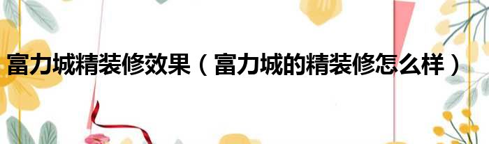 富力城的精装修怎么样