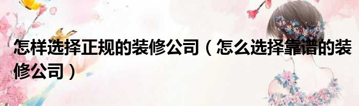 怎样选择正规的装修公司(怎么选择靠谱的装修公司)