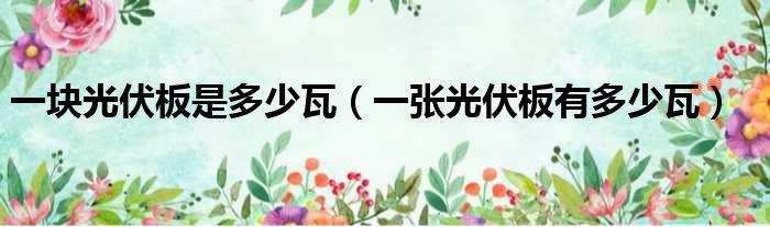 一块光伏板是多少瓦(一张光伏板有多少瓦)