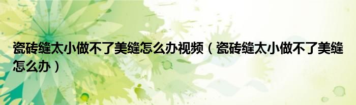 瓷砖缝太小做不了美缝怎么办视频(瓷砖缝太小做不了美缝怎么办)
