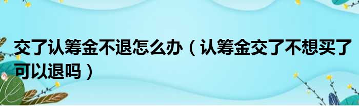 交了认筹金不退怎么办(认筹金交了不想买了可以退吗)