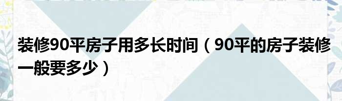 装修90平房子用多长时间(90平的房子装修一般要多少)